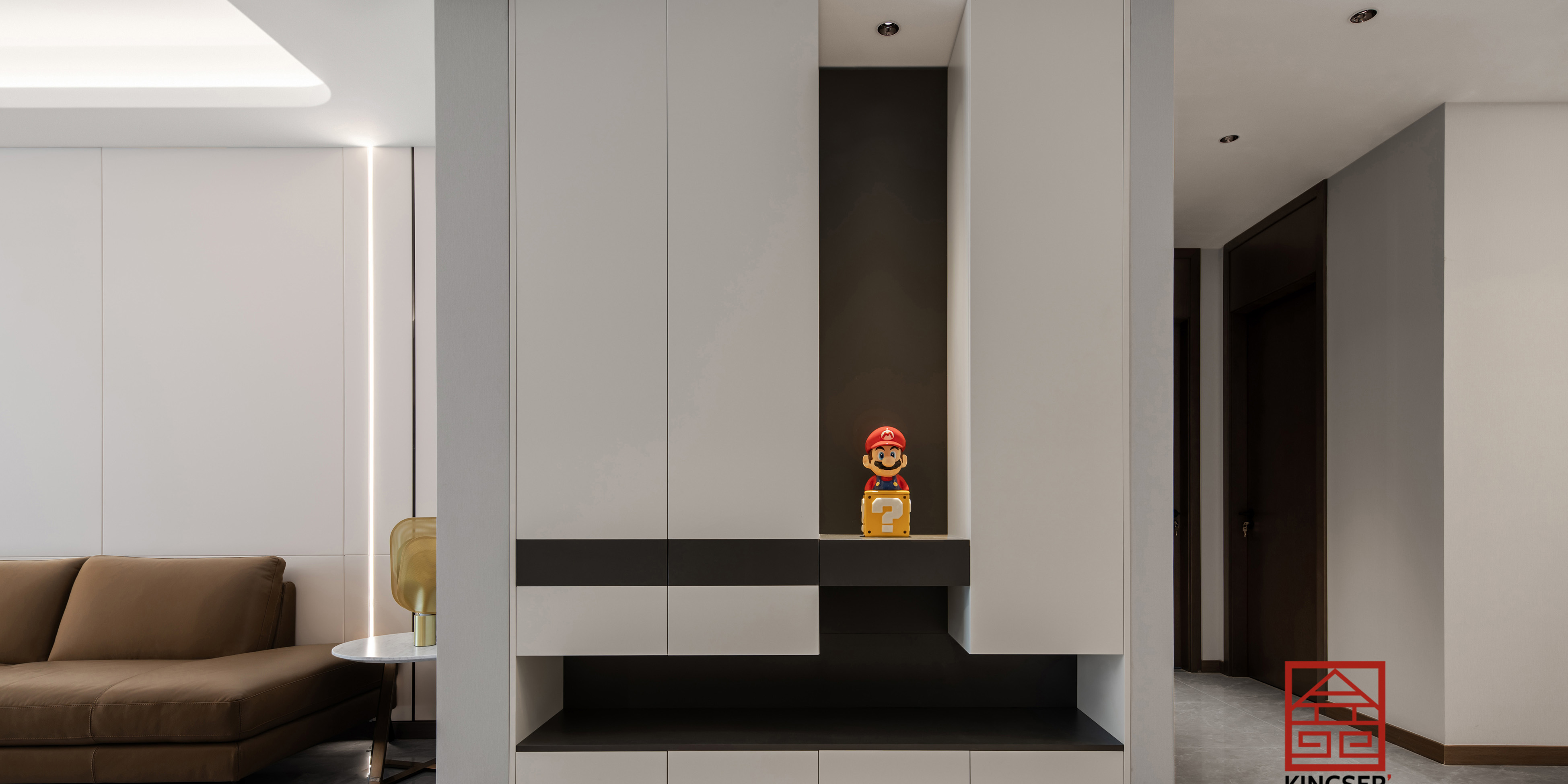 本案在配色上深邃又冷靜,完全契合業主對于新家的設定,設計師將居住者的需求與情懷融于一體,賦予空間更加鮮明的性格